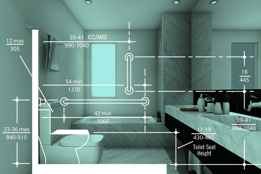 The following are recommended bathroom standards for accessible design from the ADA and CAPS: