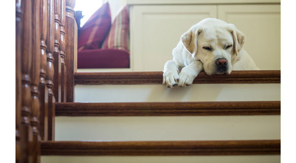 When Makenzie Smith's pet, a Great Dane named Magnum, could no longer walk stairs to the second floor of her childhood home, her parents relocated their own bedroom downstairs to the living room. Finding ways to accommodate an aging pet doesn’t have to be so extreme, she says. A few things to keep in mind: