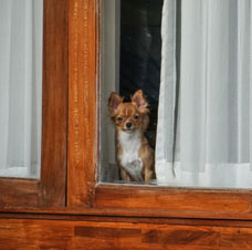 Set windows facing a street higher than the dog's standing sight-line or cover existing windows with blinds a dog can't easily move aside, like plantation shutters, says Mirabelli. "In shelters, we stagger the kennels a few feet apart so dogs can't see each other, which can make them nervous," says Mirabelli, who owns two special needs dogs.