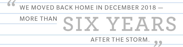 We moved back home in December 2018 — more than six years after the storm.